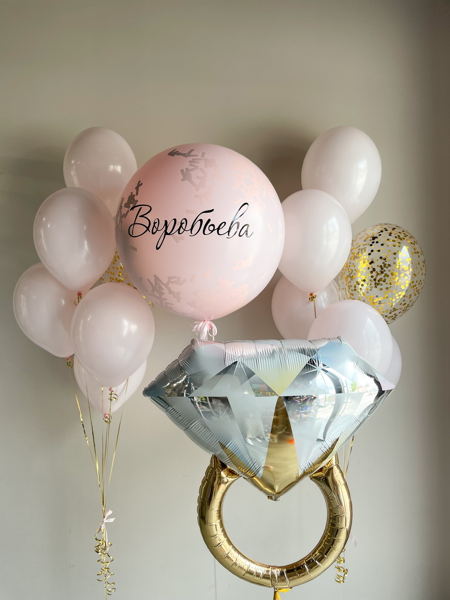 • Шар двойной на девичник, снаружи девичья фамилия, внутри сердце 45 см с новой фамилией