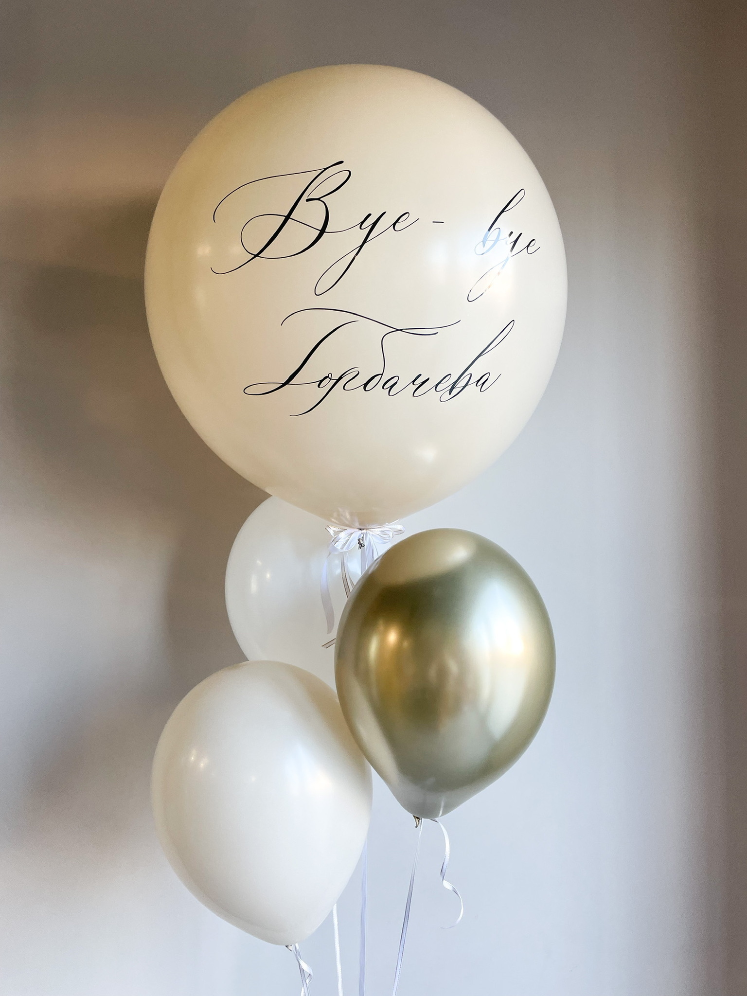 • Фонтан из шара 60 см с надписью, 2 однотонных и 1 хром золото