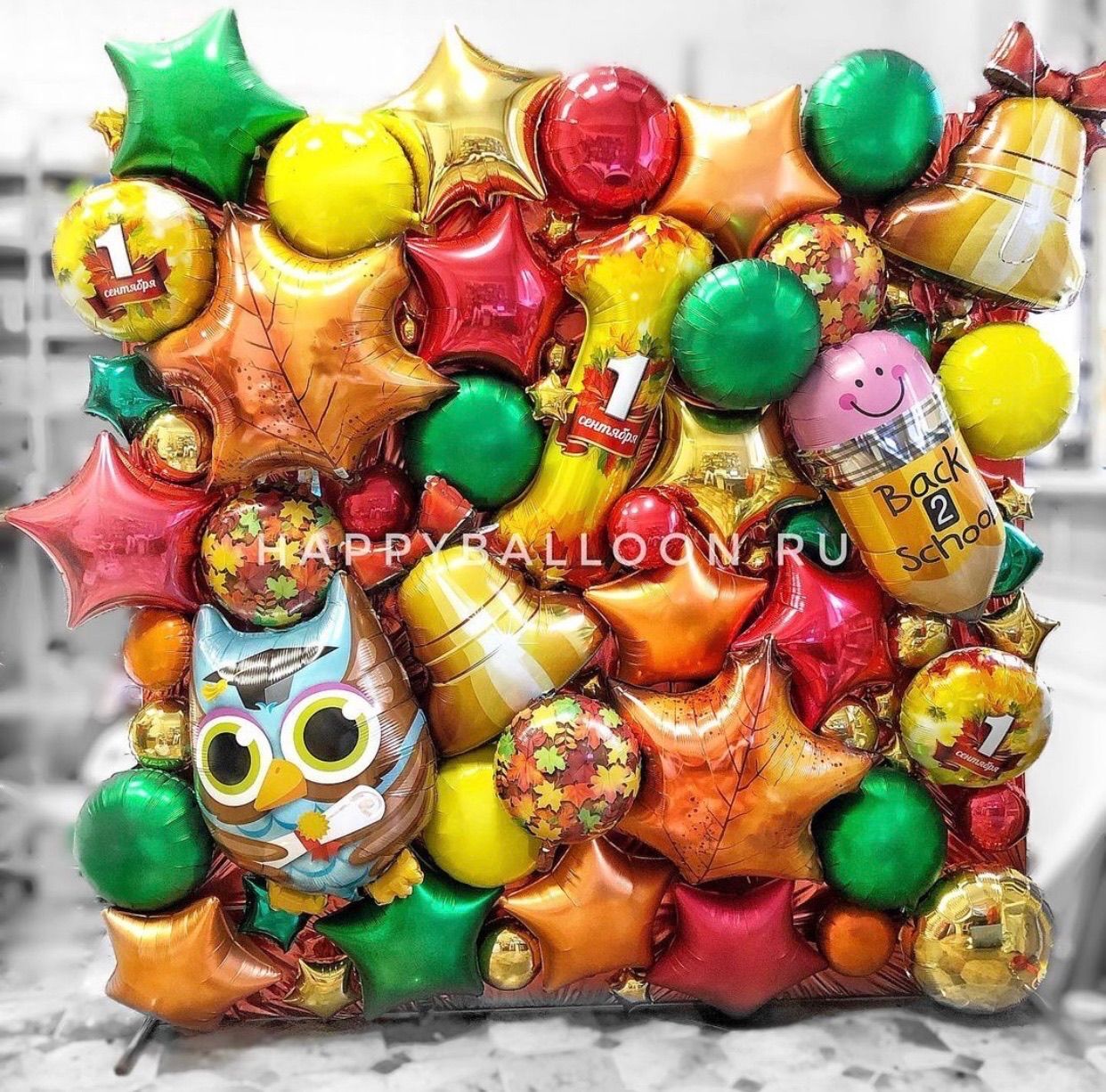 Фотозона к 1 сентября из фольгированных фигур 2х2 м