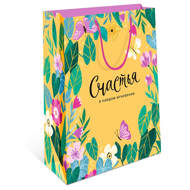 Пакет подарочный "Бабочки. Счастья в каждом мгновении" 33*10*42,5 см