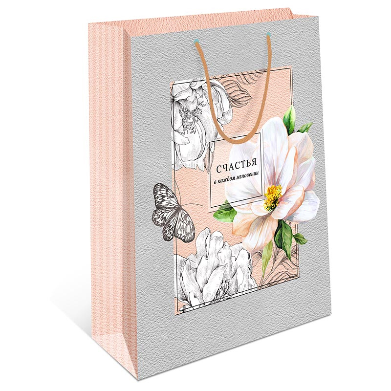 Пакет подарочный "Цветок. Счастья в каждом мгновении" 26*12*32 см