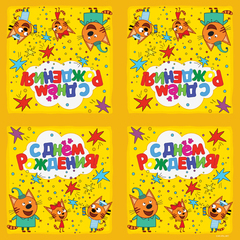 Салфетки, Три Кота, С Днем Рождения!, Желтый, 33*33 см, 20