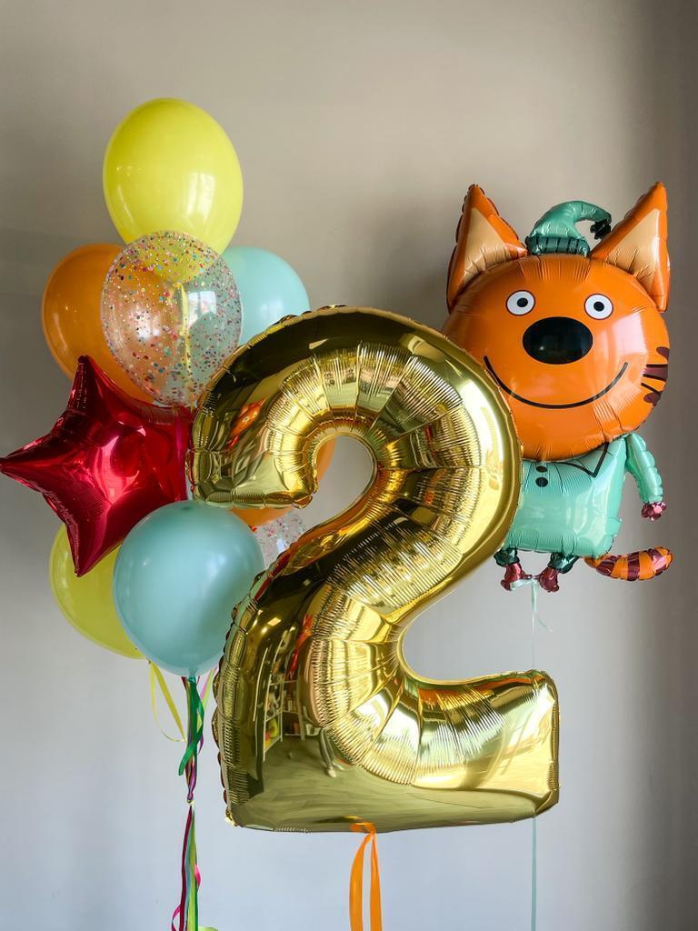 Фонтан из 10 шаров: 2 с конфетти, 1 звезда, 7 обычных