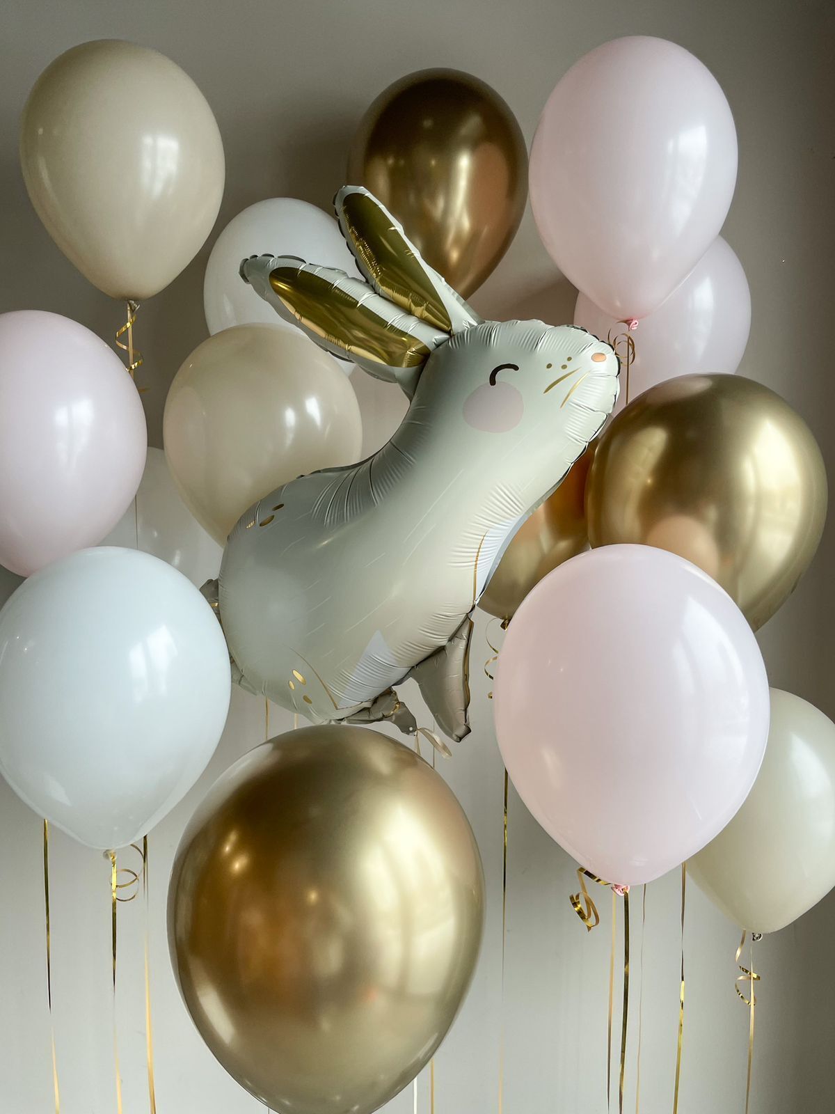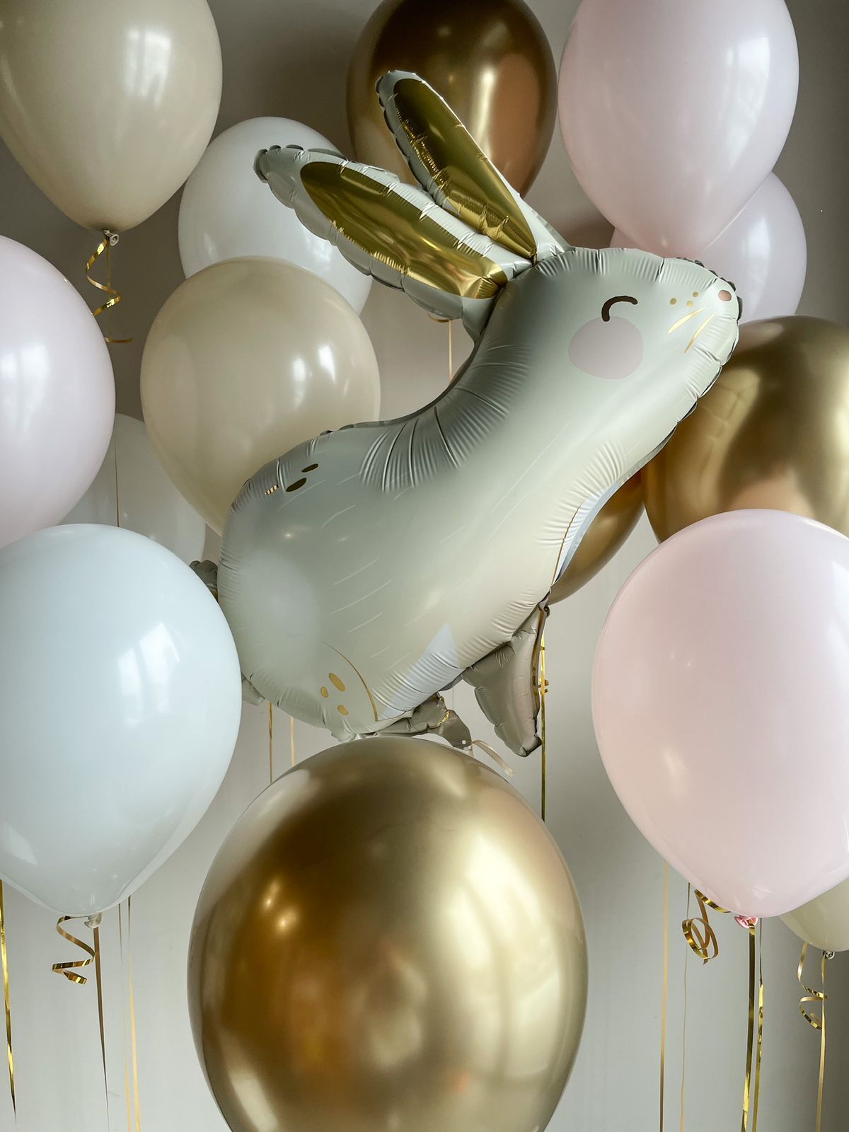 • 14 Шаров на индивидуальных грузиках (4 хром золото, 4 розовый макарунс, 3 белый песок, 3 белых)