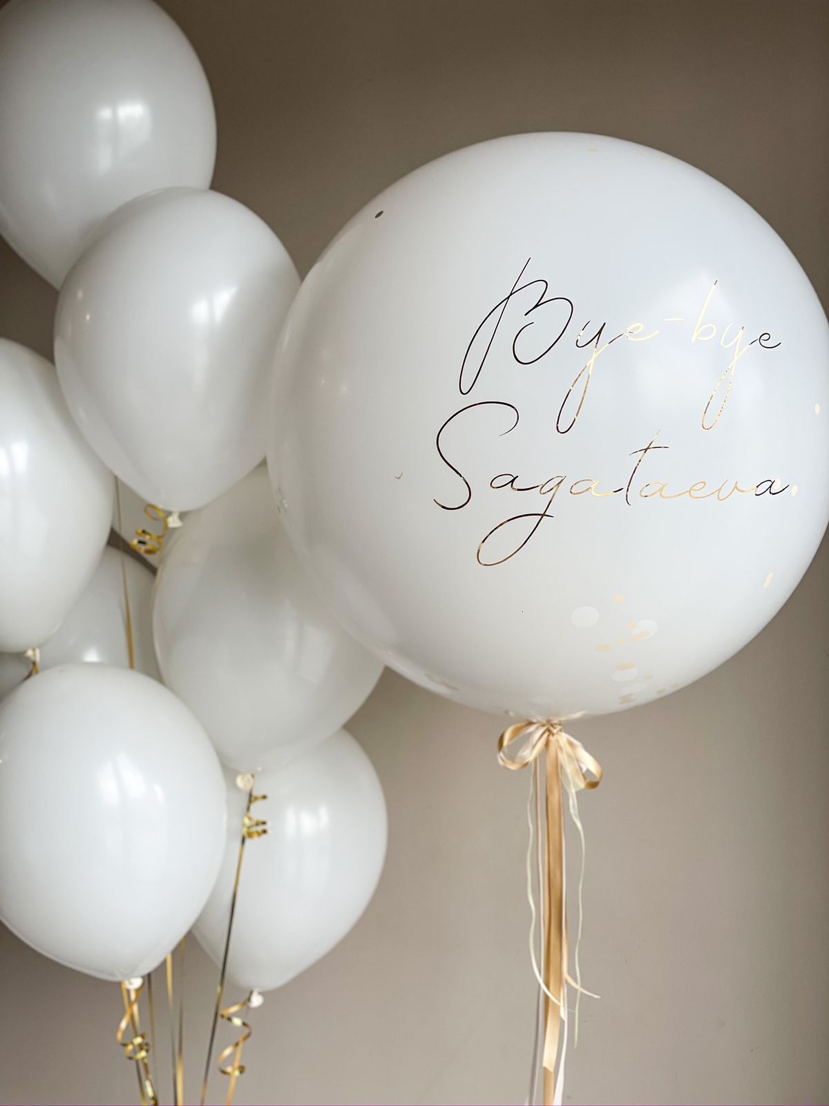 • Двойной шар на девичник, внешний шар с девичьей фамилией, внутри сердце 45 см с новой фамилией