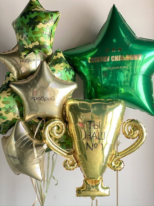 Фонтан из 4 звезд камуфляж и 4 звезд с надписью