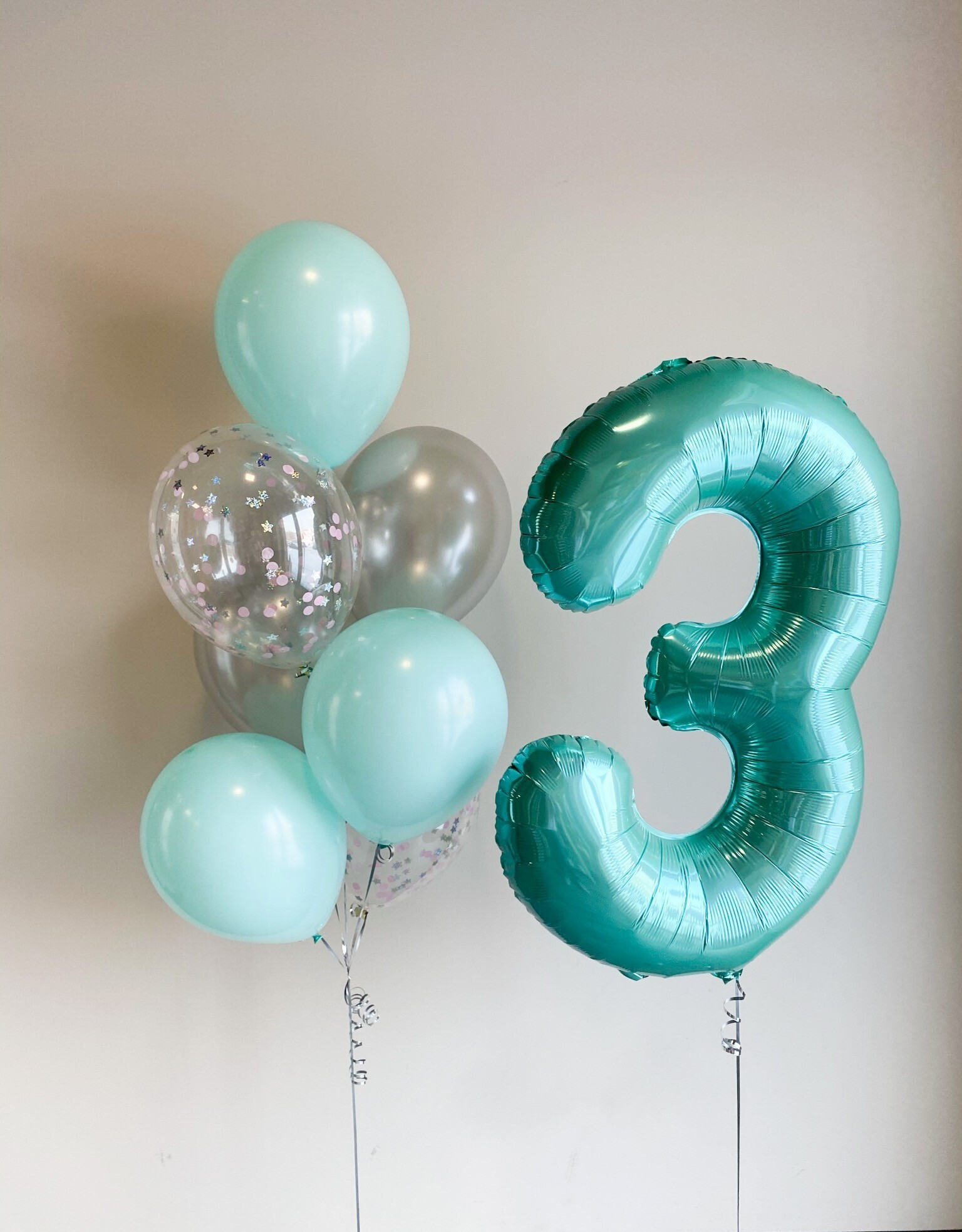 - Фонтан из 7 шаров: 2 с конфетти и 5 однотонных
