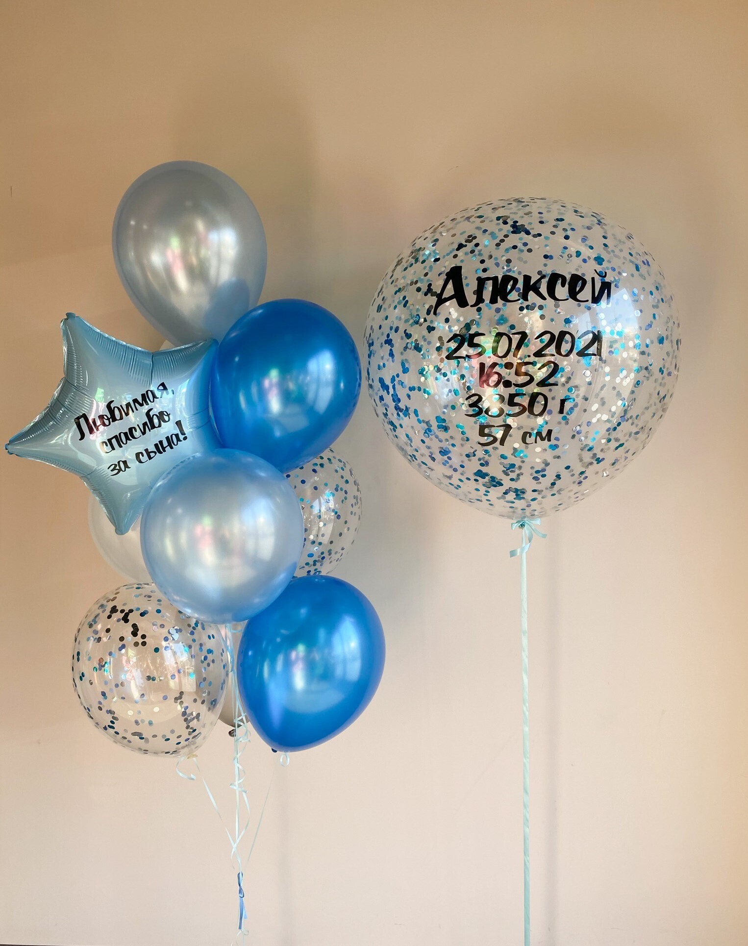 Данный набор возможен с изменением цветовой гаммы, количеством шаров, добавлением индивидуальной надписи:)