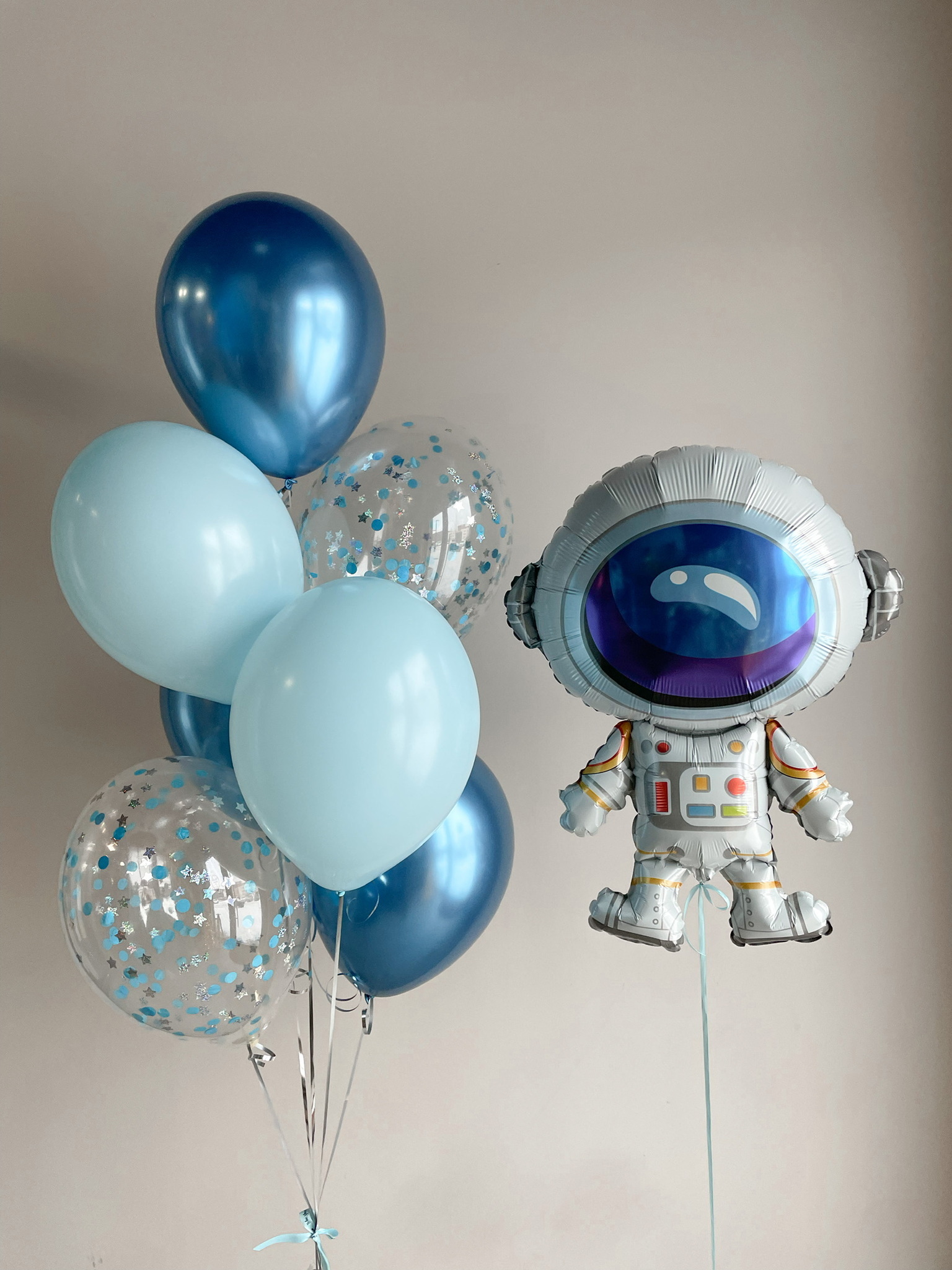 - Фонтан из 7 шаров: 2 с конфетти, 3 хром, 2 однотонных.