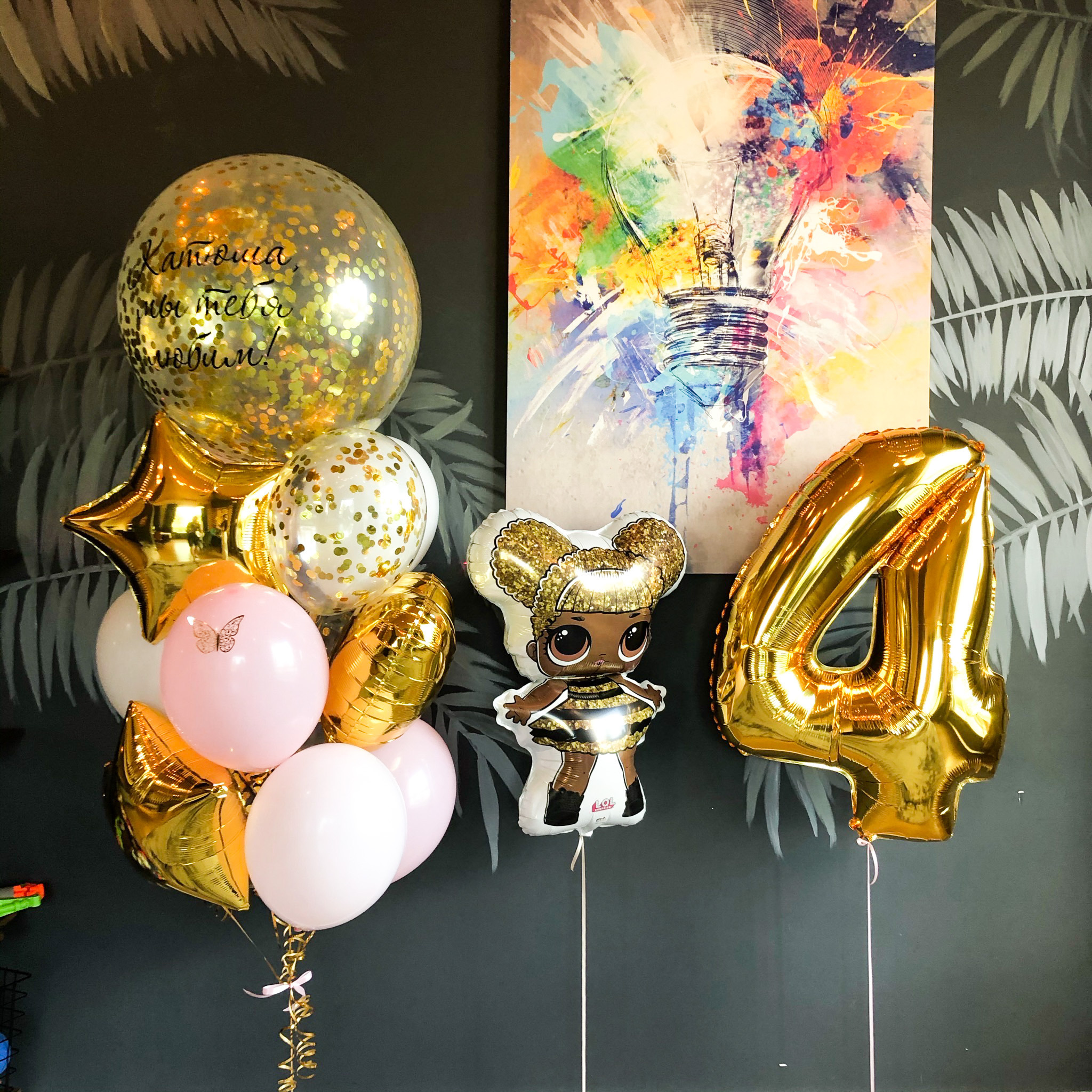 Данный набор возможен с изменением цветовой гаммы, количеством шаров, добавлением индивидуальной надписи)
