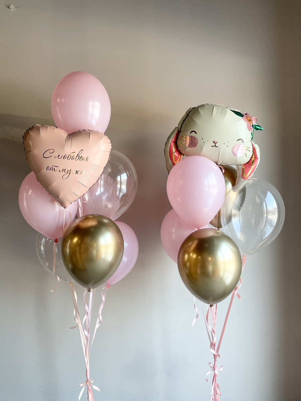 1 фонтан: 6 обычных шаров, 2 хром, сердце с надписью
