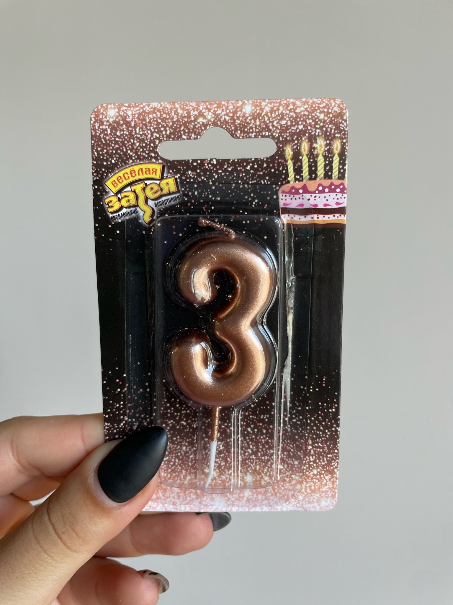 Свеча -цифра "3" Розовое золото 4,5см/V