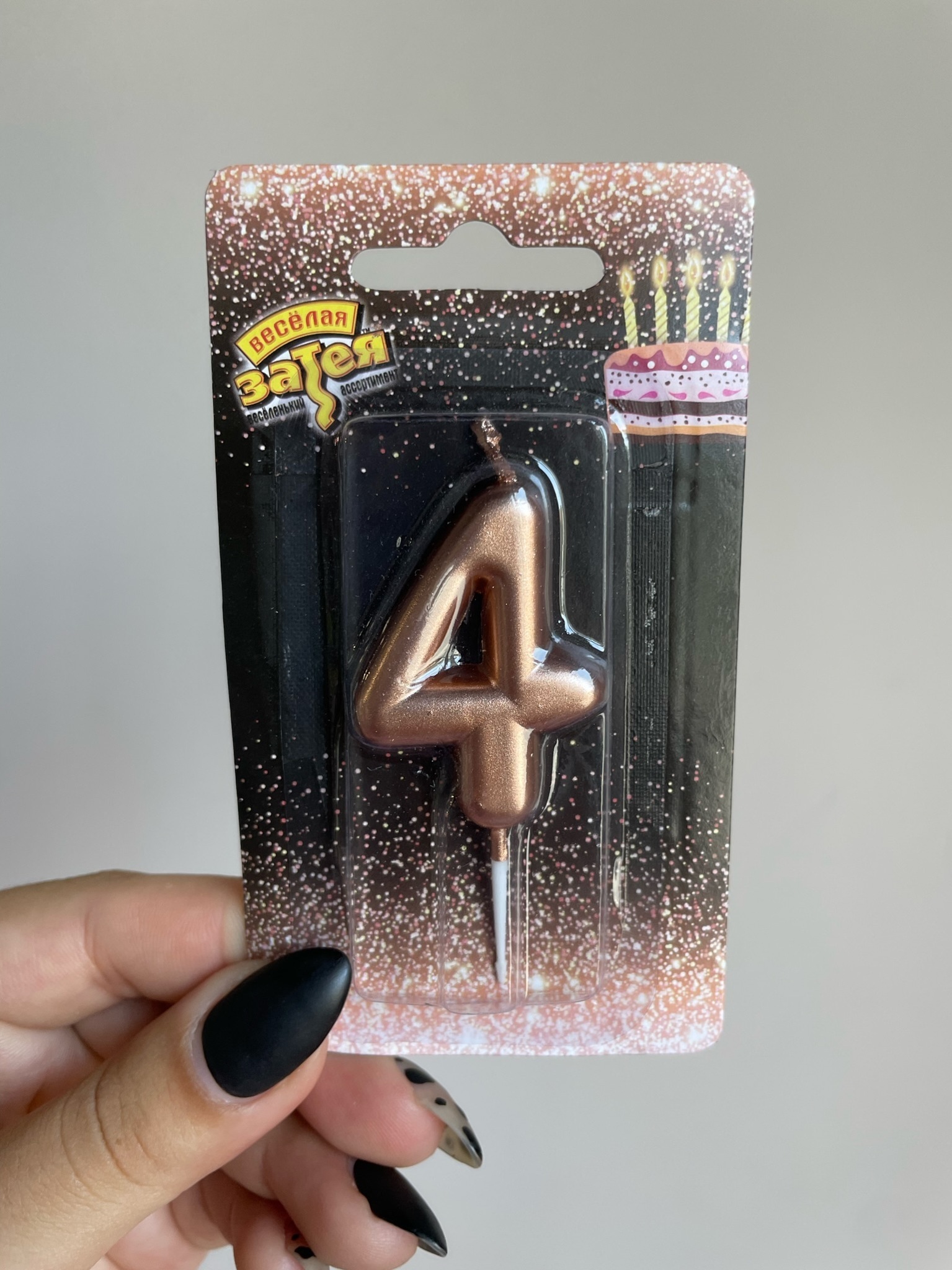Свеча -цифра "4" Розовое золото 4,5см/V