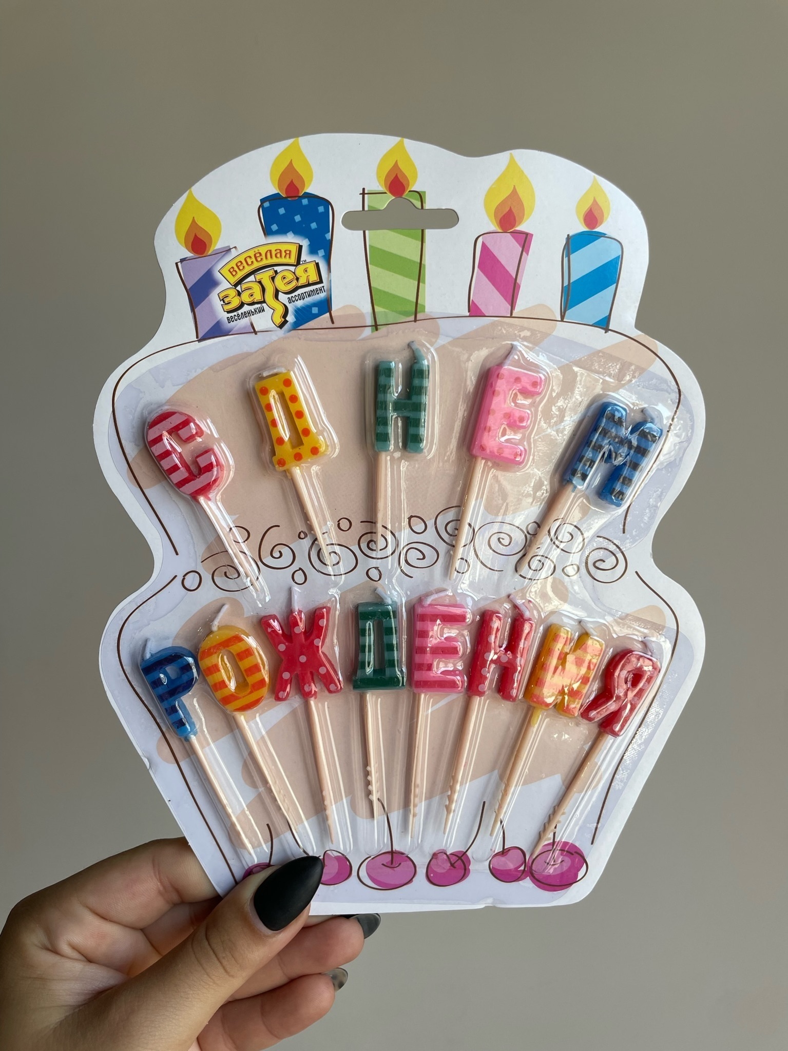 Свечи д/торта на пиках С ДНЕМ РОЖДЕНИЯ/V