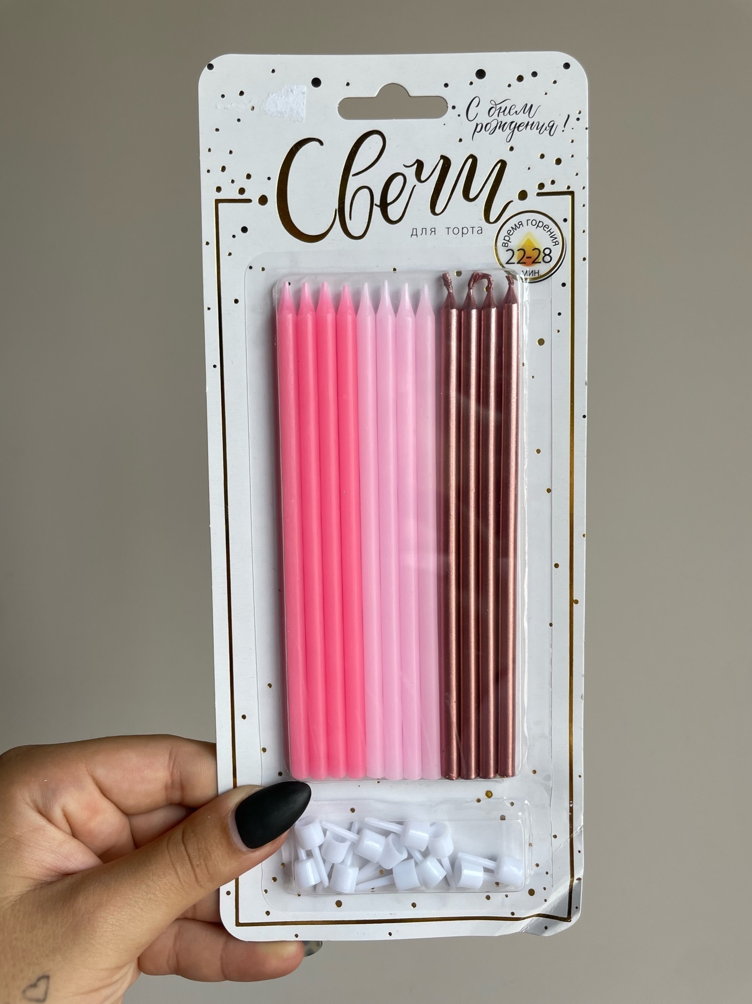 Свечи тортовые классические XL "Микс Металл" Розовый, нежно-розовый, роза голд металлизированный 15 см, 12 шт.